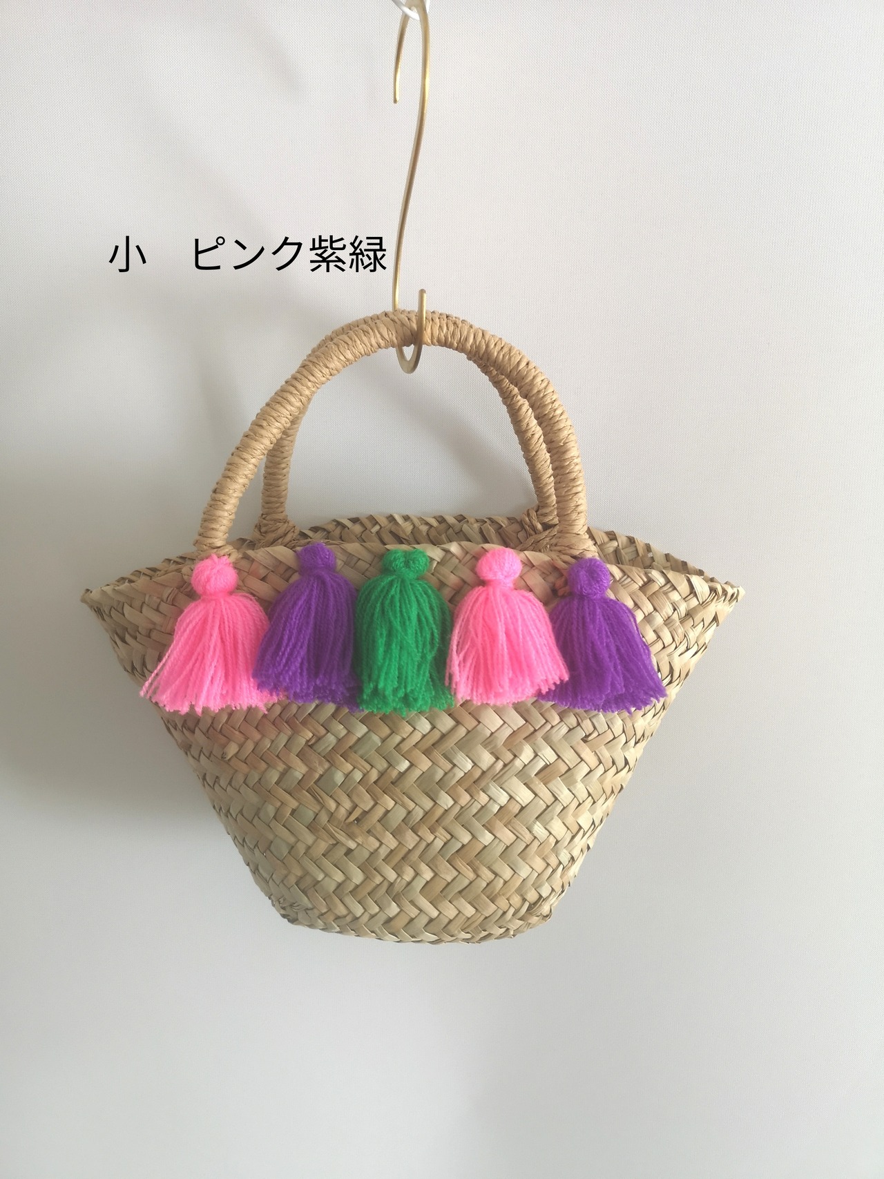 カラフルフリンジ付き かごバッグ 小