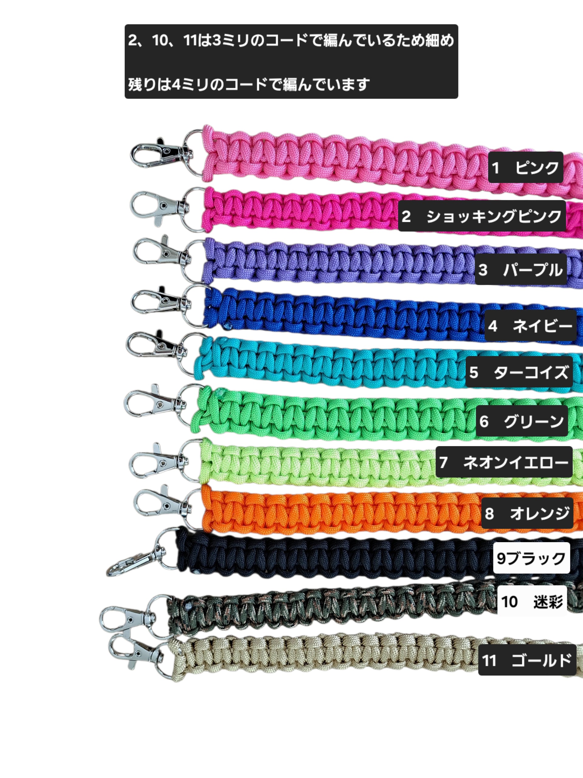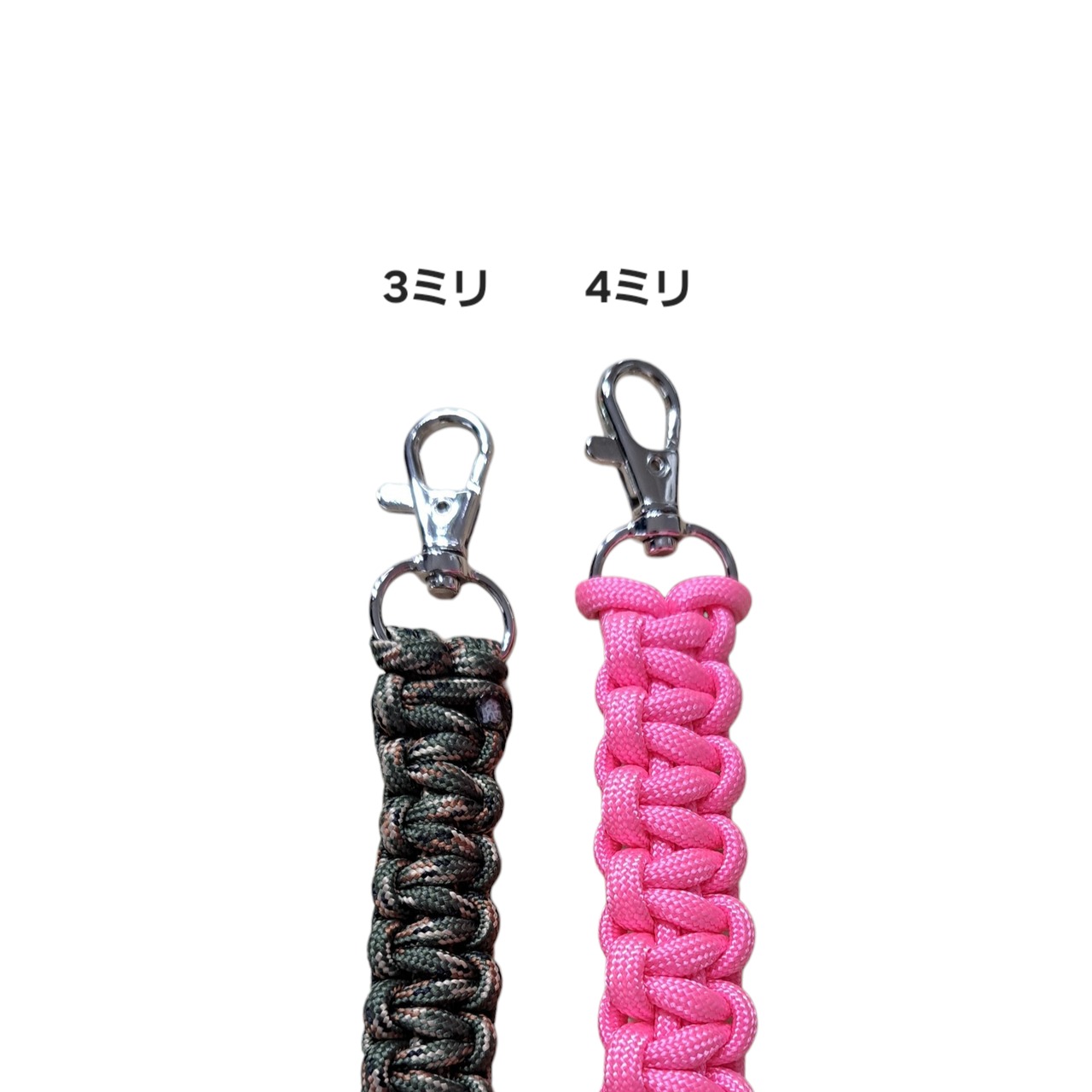 3ミリと4ミリのパラコード編んだストラップです。